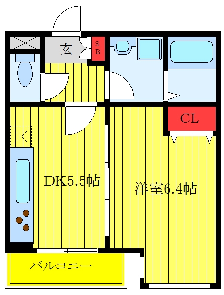 DK 5.5 畳 洋室 6.4 畳 |