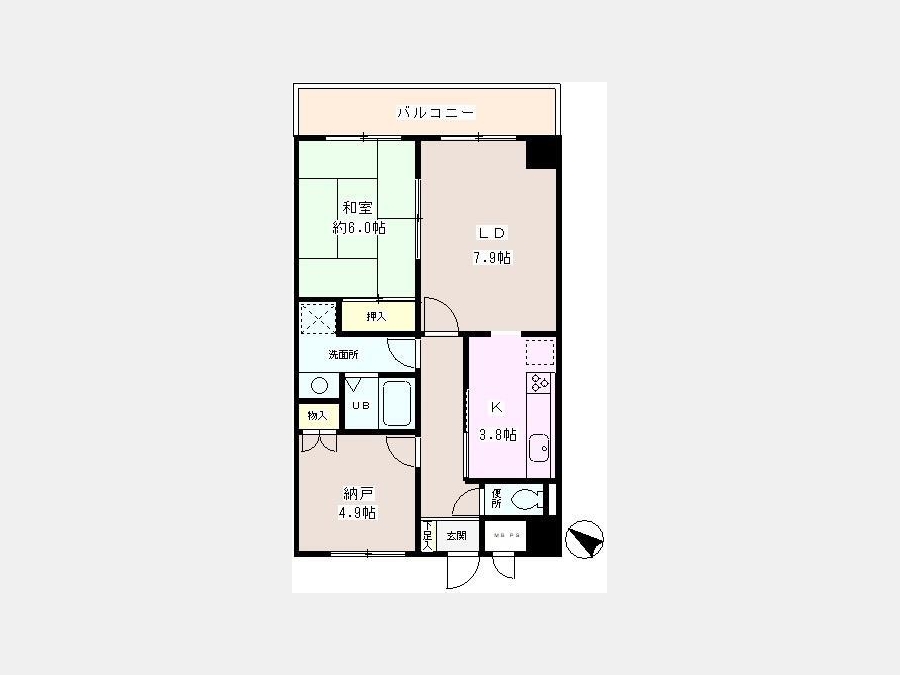 S 4.9 畳 和室 6 畳 LD 7.9 畳 K 3.8 畳 |