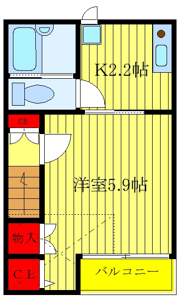 洋室 5.9 畳 K 2.2 畳 |