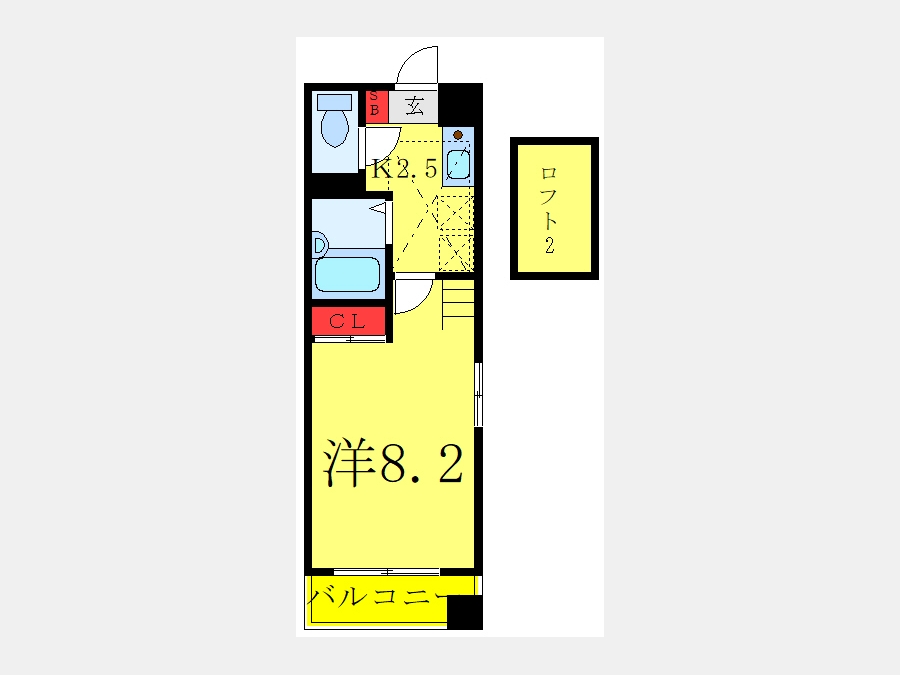 洋室 8.2 畳 ロフト付き |