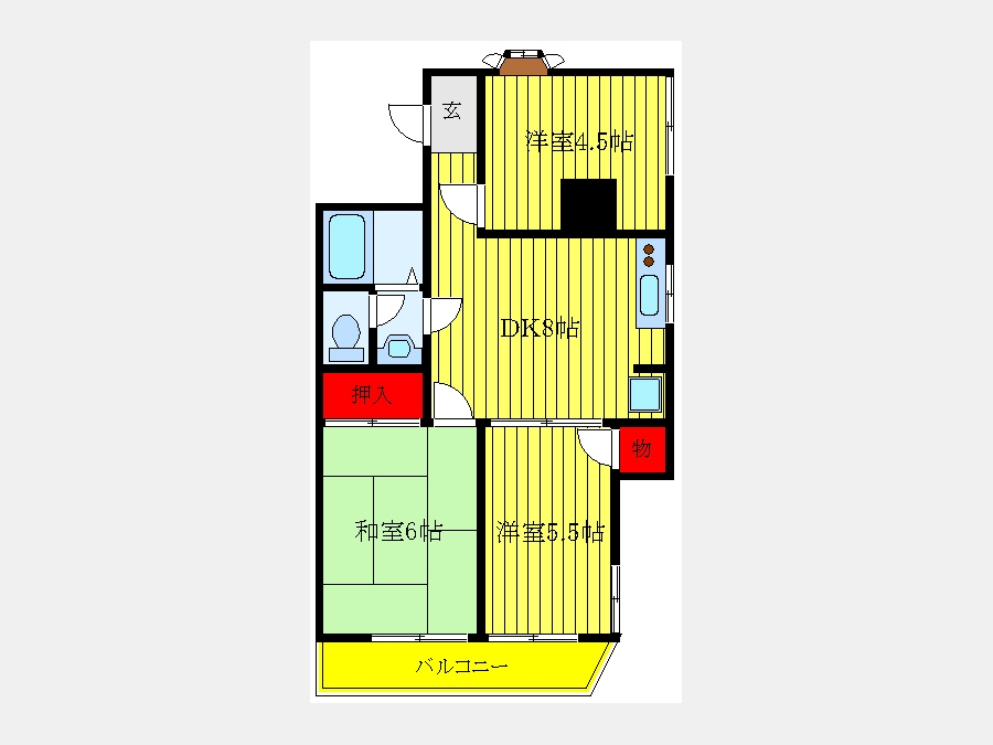 洋室 4.5 畳 洋室 5.5 畳 和室 6 畳 LDK 9 畳 |