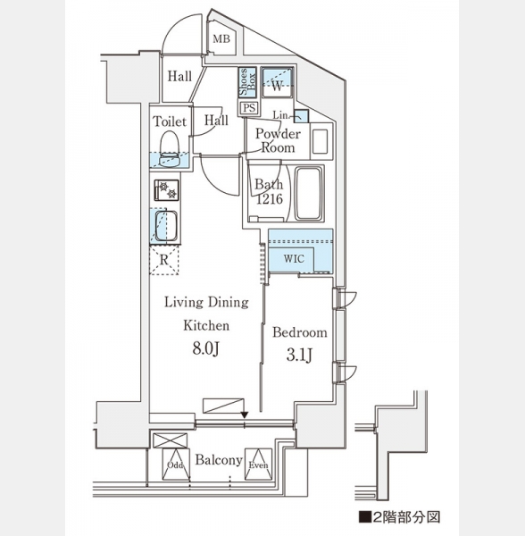 LDK 8 畳 1 室 洋室 3.1 畳 1 室 |