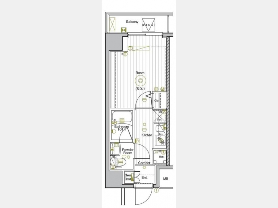 | 間取り | 1K | 階建 | 6階/8階建 |