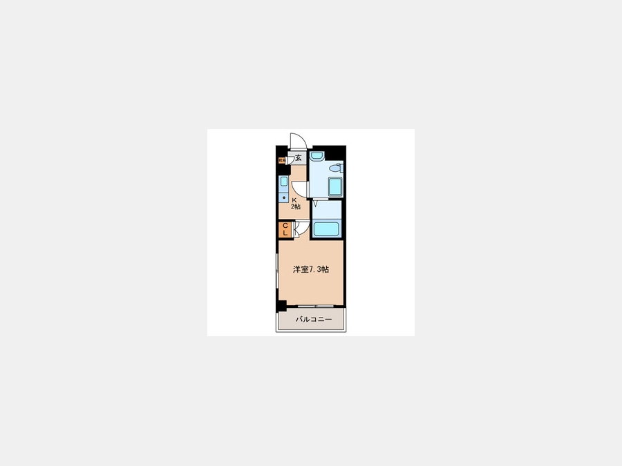 洋室 7.3 畳 1 室 K 2 畳 1 室 |