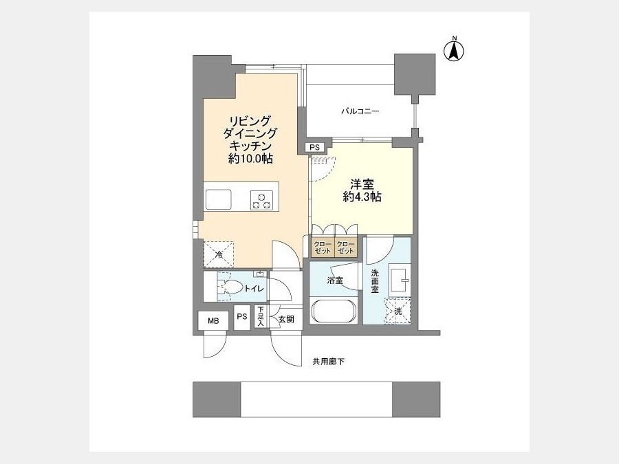LDK 10 畳 1 室 洋室 4.3 畳 1 室 |