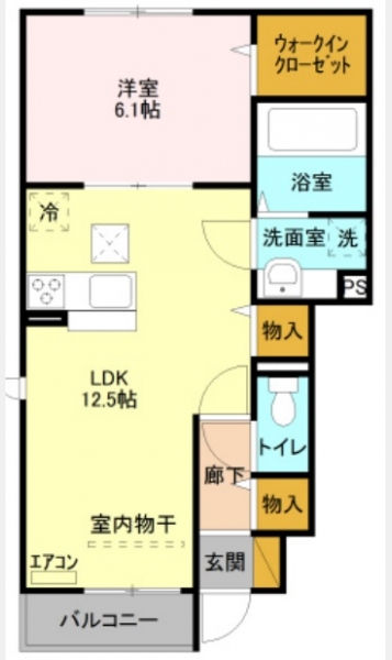 洋室 6.1 畳 LDK 12.5 畳 |