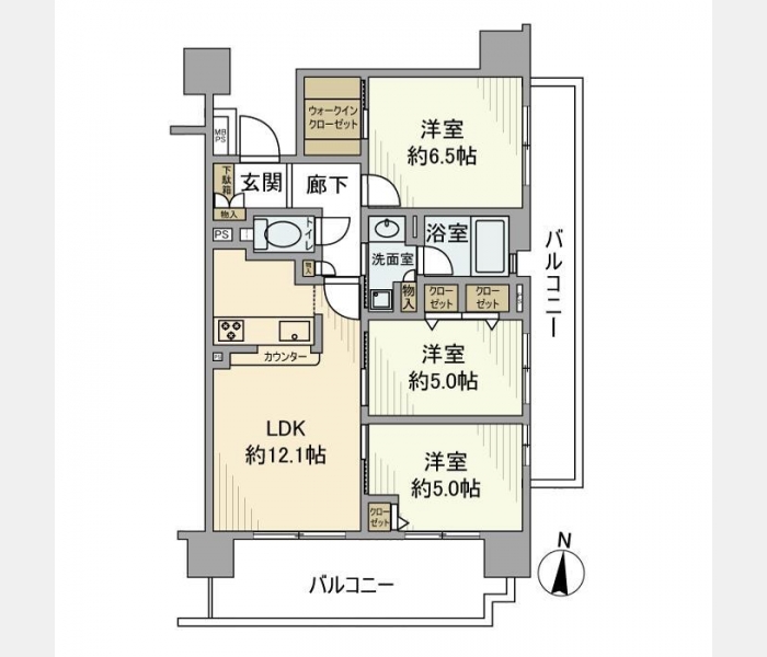 | 専有面積 | 65.00m² | バルコニー面積 | |