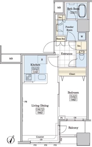 | 専有面積 | 47.36m² | バルコニー面積 | |