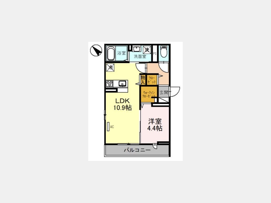 洋室 4.4 畳 LDK 10.9 畳 |