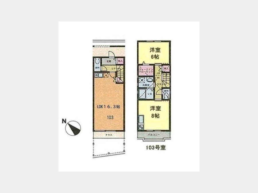 洋室 6 畳 洋室 8 畳 LDK 16.3 畳 ロフト6帖 |