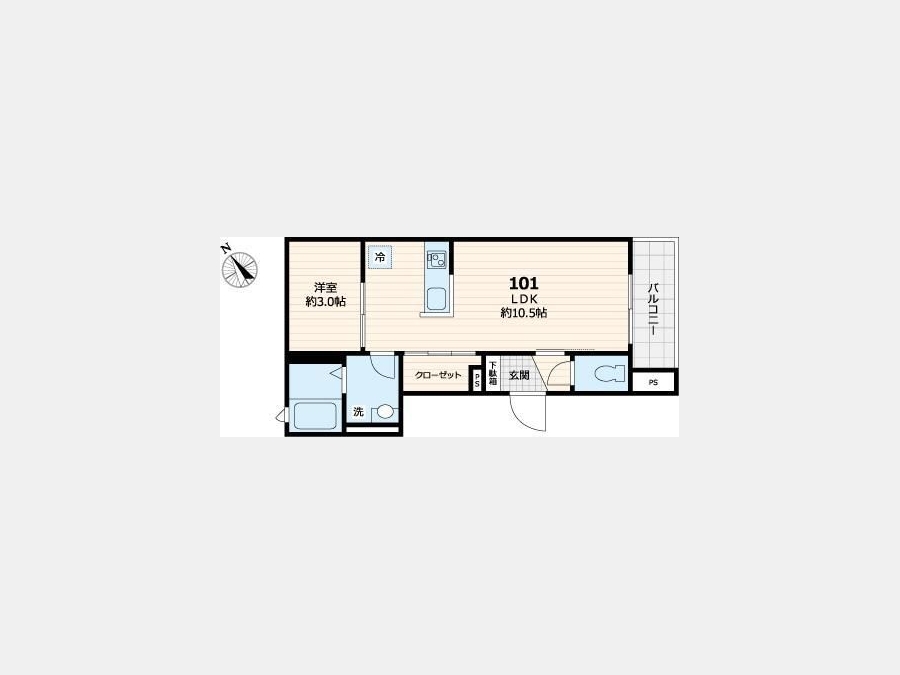 LDK 10.5 畳 1 室 洋室 3 畳 1 室 |