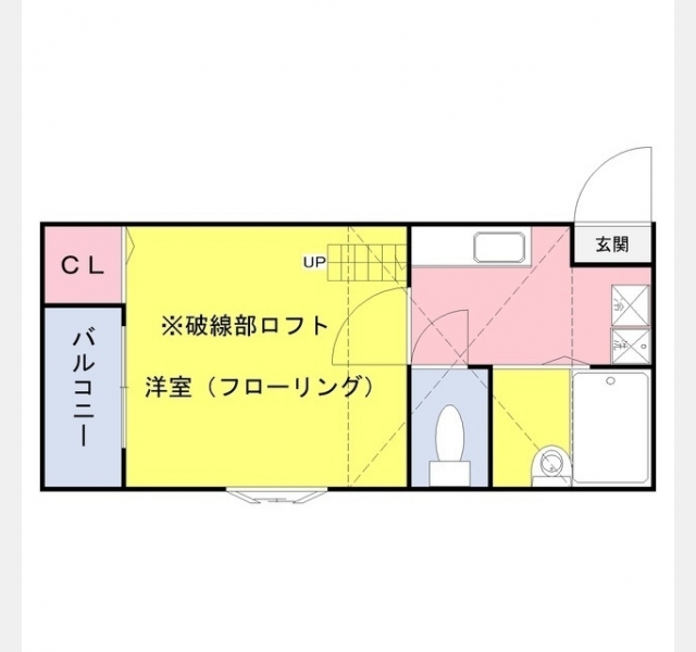 | 設備・条件 | 1階、角部屋、バス・トイレ別、室内洗濯機置き場、フローリング、ロフト付き、エアコン、バルコニー、敷金なし、ルームシェア相談、インターネット対応、TVドアホン、プロパンガス | ||