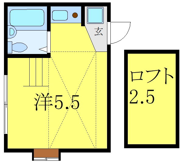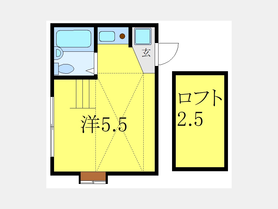 | 設備・条件 | TVドアホン、都市ガス、2階以上、最上階、角部屋、室内洗濯機置き場、フローリング、ロフト付き、エアコン、礼金なし、敷金なし、保証人不要、ルームシェア相談、自社管理物件 | ||