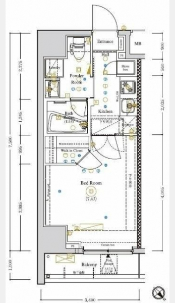 K 2 畳 洋室 7.4 畳 |