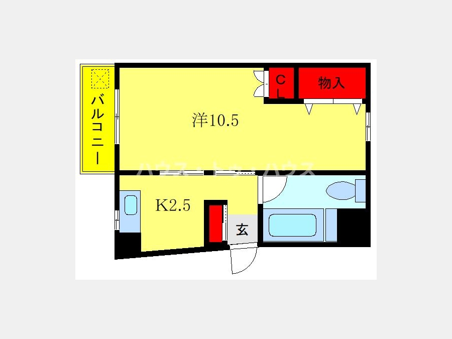 洋室 10.5 畳 1 室 K 2.5 畳 1 室 |