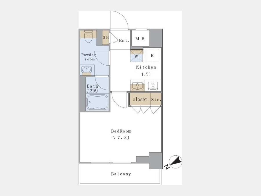 洋室 7.3 畳 K 1.5 畳 |