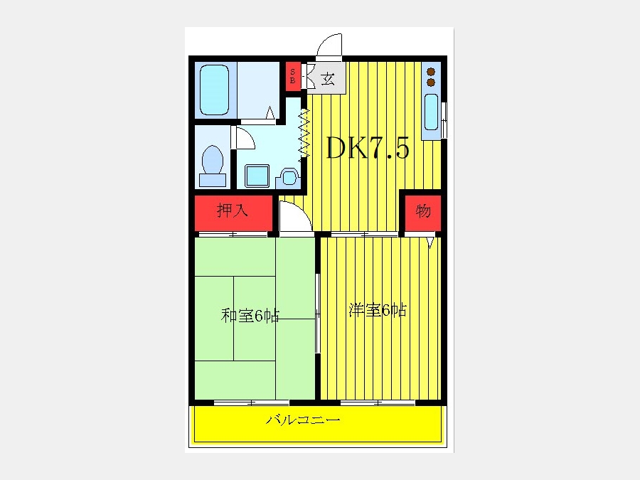 DK 7.5 畳 1 室 洋室 6 畳 1 室 和室 6 畳 1 室 |
