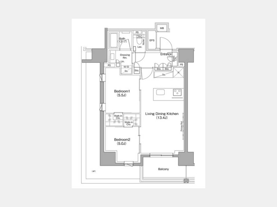 | 敷金/礼金 | 1ヶ月 / なし | 専有面積 | 55.27m² |