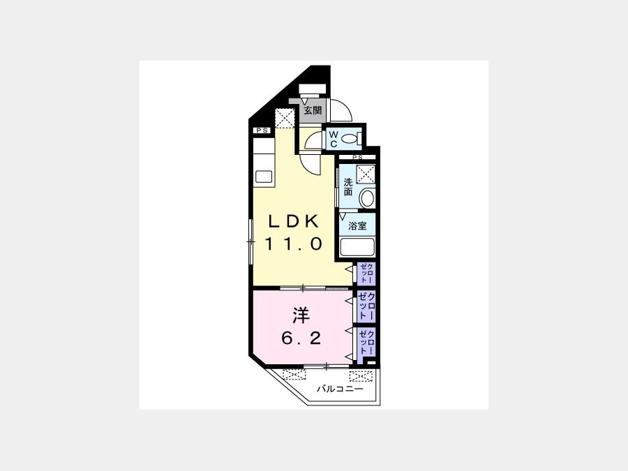 洋室 6.2 畳 1 室 LDK 11 畳 1 室 |