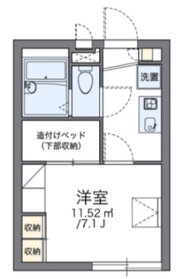 | 間取り | 1K | 階建 | 1階/2階建 |