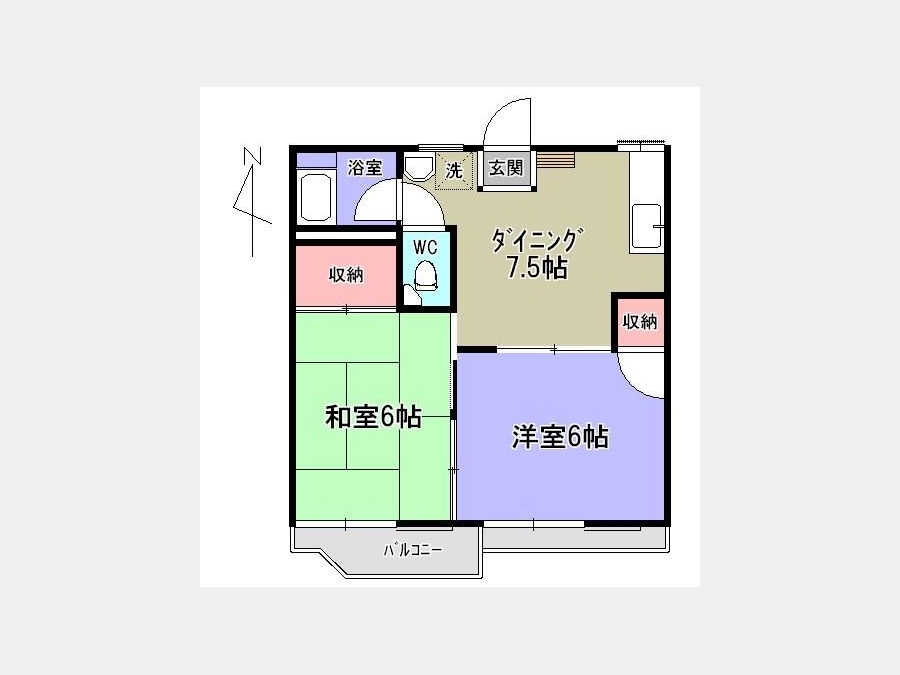 和室 6 畳 洋室 6 畳 DK 7.5 畳 |