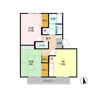 洋室 6.5 畳 1 室 和室 6 畳 1 室 DK 7.5 畳 1 室 |