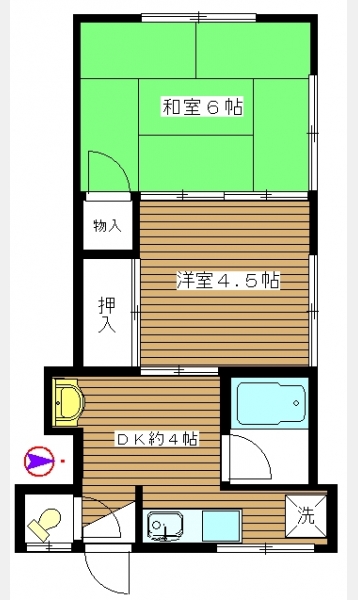 1 室 和室 6 畳 1 室 洋室 4.5 畳 1 室 |