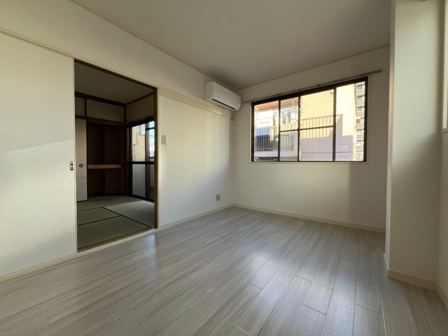 | 設備・条件 | 2階以上、最上階、角部屋、バス・トイレ別、室内洗濯機置き場、フローリング、エアコン、バルコニー、礼金なし、敷金なし、2人入居相談、インターネット対応、CATV、TVドアホン、駐輪場、都市ガス、低層マンション | ||