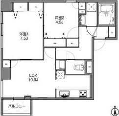 LDK 10.9 畳 洋室 7.5 畳 洋室 4.5 畳 |