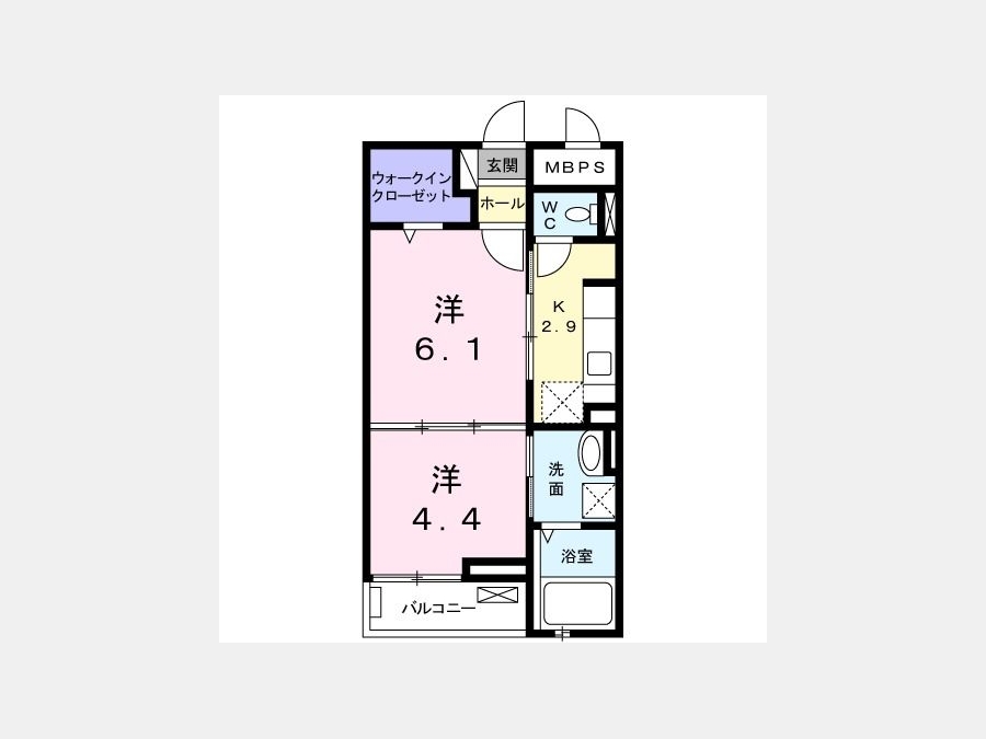 洋室 4.4 畳 1 室 洋室 6.1 畳 1 室 K 2.9 畳 1 室 |