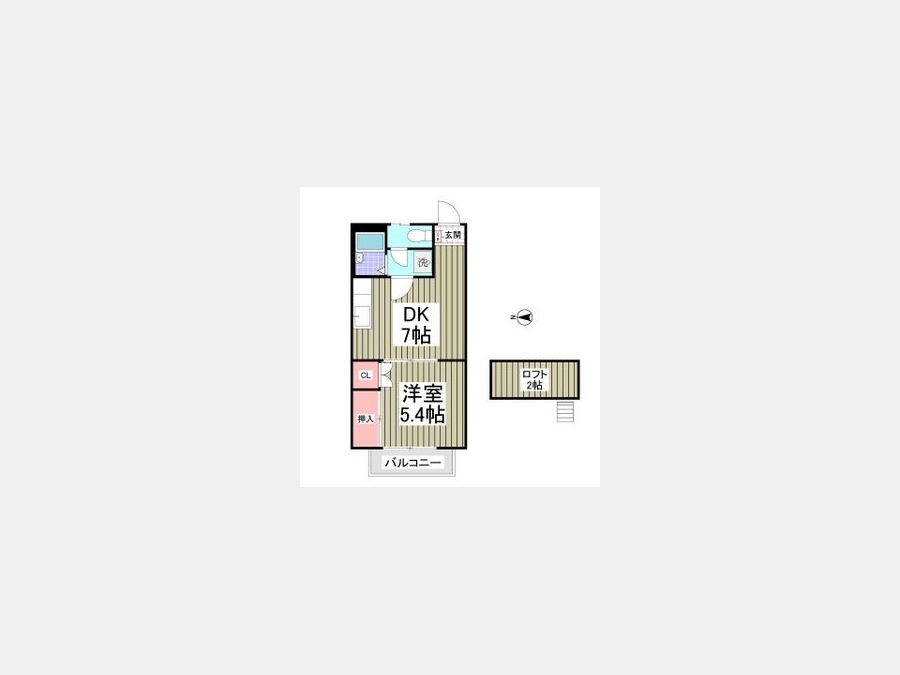 DK 7 畳 洋室 5.4 畳 ロフト3帖 |