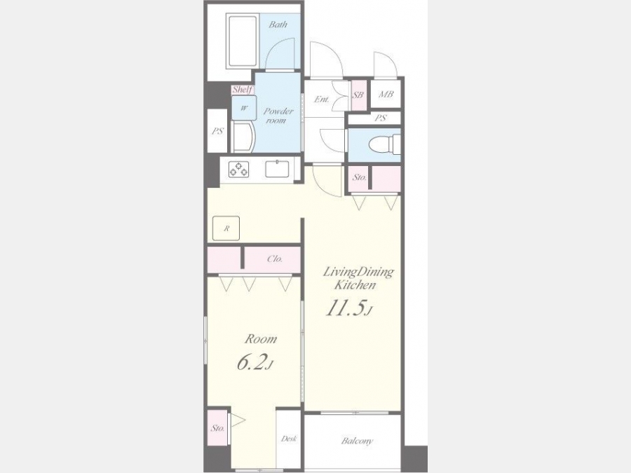 洋室 6.2 畳 LDK 11.5 畳 |