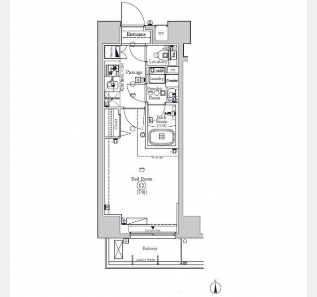 | 敷金/礼金 | 1ヶ月 / 1ヶ月 | 専有面積 | 25.18m² |