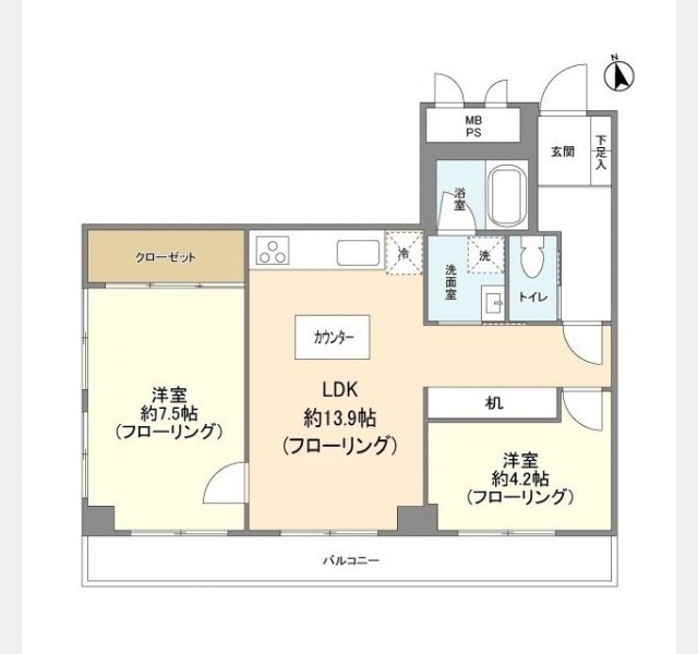 LDK 13.9 畳 1 室 洋室 7.5 畳 1 室 洋室 4.2 畳 1 室 |