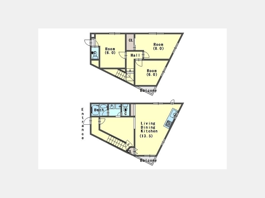 LDK 13.5 畳 洋室 8 畳 洋室 6 畳 洋室 6 畳 |