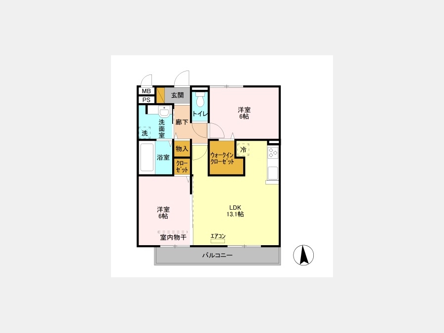 LDK 13.1 畳 洋室 6 畳 洋室 6 畳 |