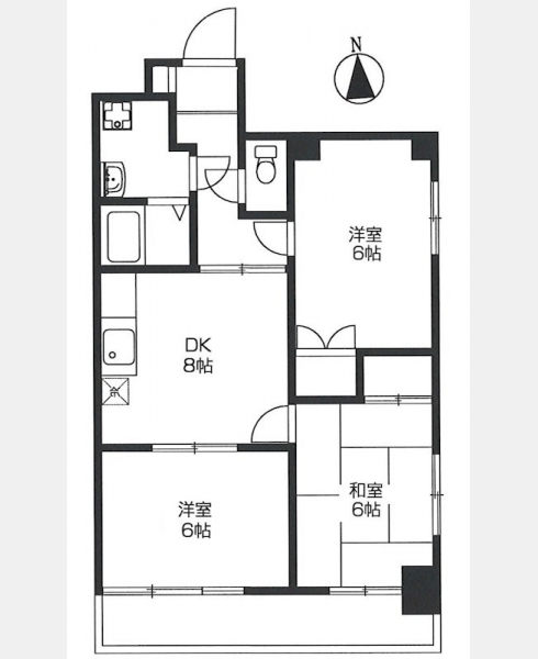 和室 6 畳 1 室 洋室 6 畳 1 室 DK 8 畳 1 室 洋室 6 畳 1 室 |