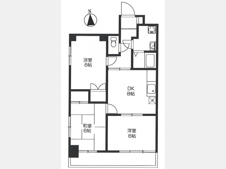 和室 6 畳 洋室 6 畳 DK 8 畳 洋室 6 畳 |
