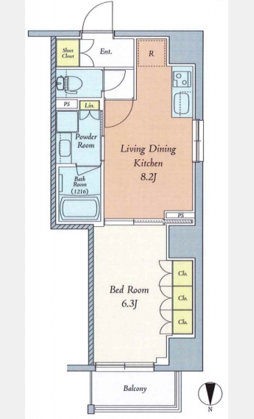 洋室 6.3 畳 1 室 LDK 8.2 畳 1 室 |