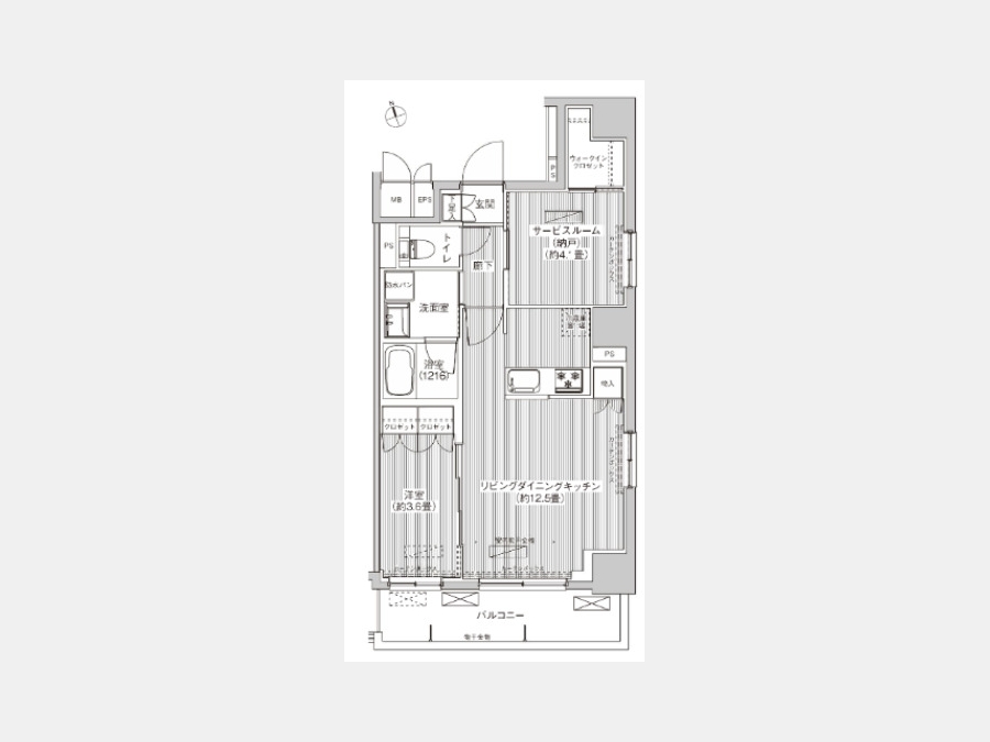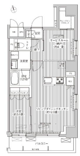 LDK 12.5 畳 洋室 3.6 畳 S 4.1 畳 |