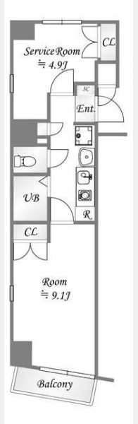 | 間取り | 1SK | 階建 | 9階/12階建(B1階) |