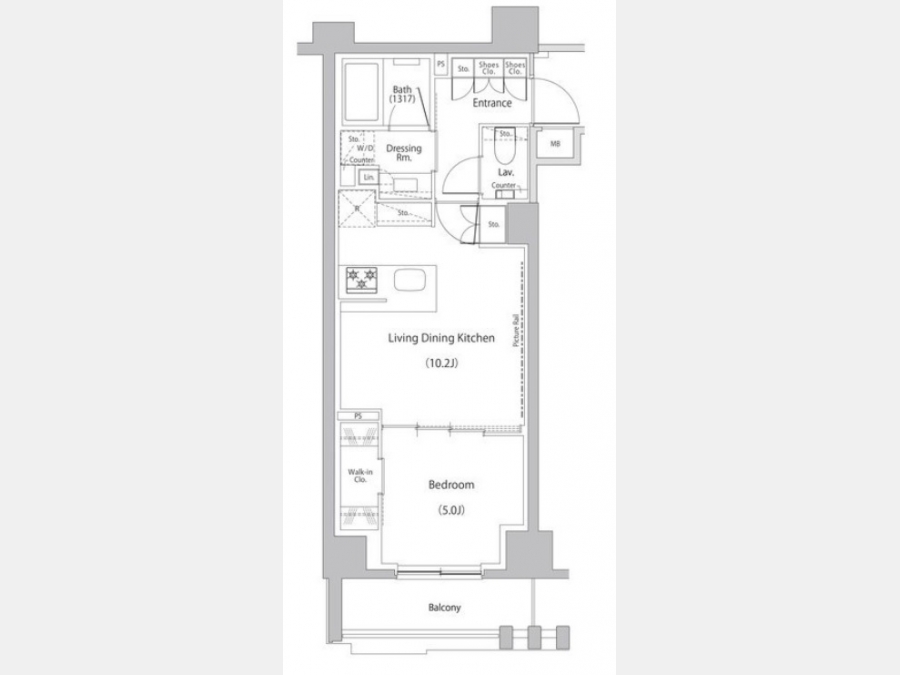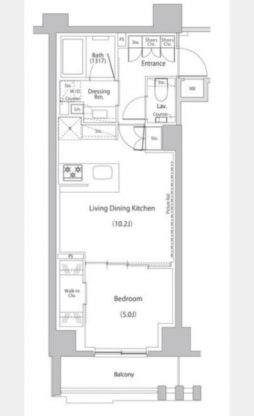 洋室 5 畳 1 室 LDK 10.2 畳 |