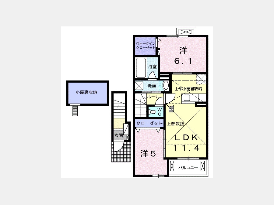 洋室 5 畳 洋室 6.1 畳 LDK 11.4 畳 |