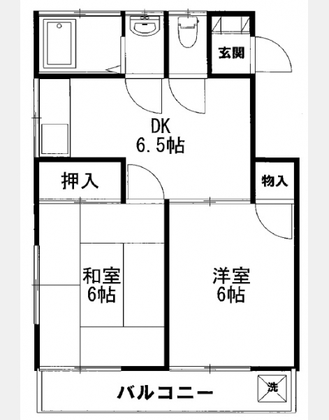 洋室 6 畳 和室 6 畳 DK 6.5 畳 |
