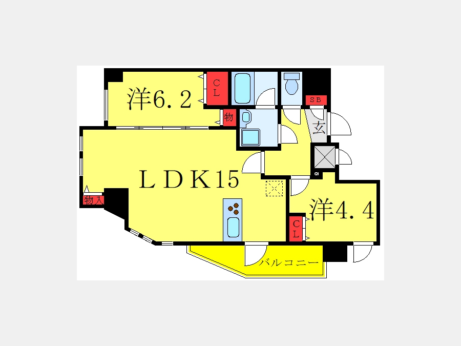 LDK 15 畳 洋室 6.2 畳 S 4.4 畳 |