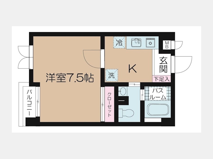 K 3 畳 1 室 洋室 7.5 畳 1 室 |