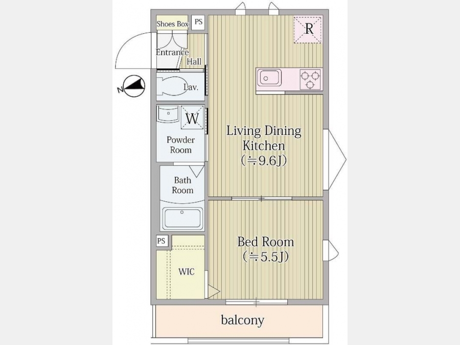 洋室 5.5 畳 1 室 LDK 9.6 畳 1 室 |