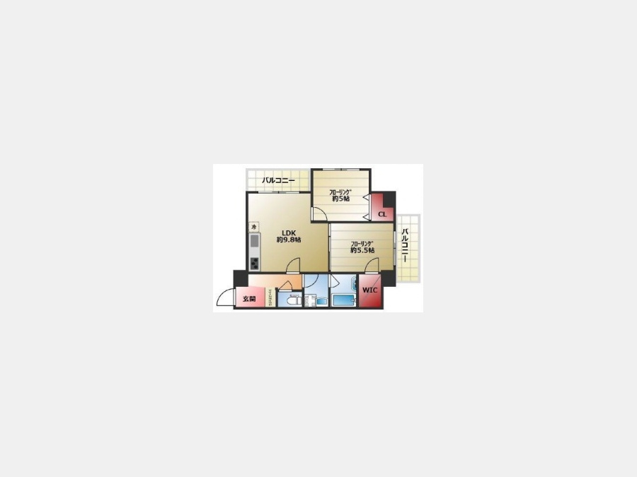 LDK 9.8 畳 1 室 洋室 5.5 畳 1 室 洋室 5 畳 1 室 |