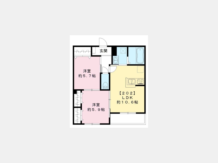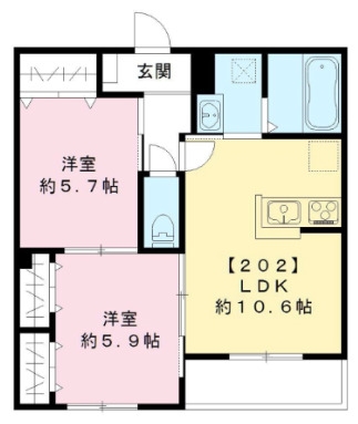 洋室 5.7 畳 洋室 5.9 畳 LDK 10.6 畳 |