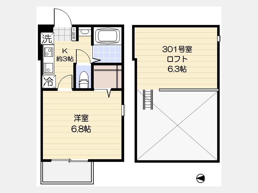 洋室 6.8 畳 K 3 畳 ロフト6.3帖 |